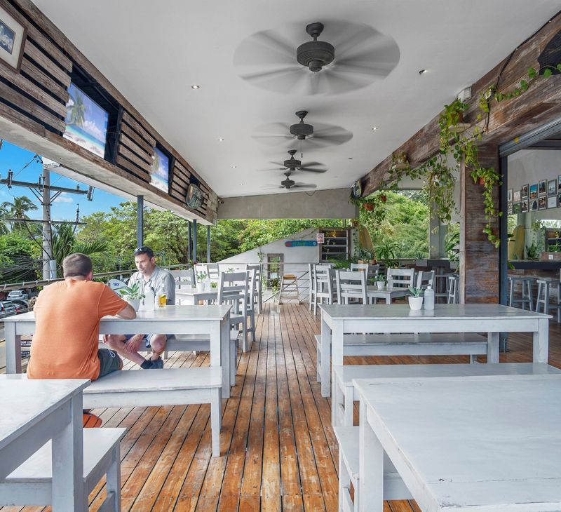 Iguana Surf Camp is ideally located at one of the best beginner surf spots in Costa Rica. We are situated within a 2-minute walk of all of the restaurants and nightlife in the beach town of Tamarindo. There is no need to rent a car here! Our Tamarindo surf camp features all of the top amenities and offers four private loft suites for two people, a deluxe dorm suite for up to 10, and a shared dorm and outdoor kitchen for the solo travelers and backpackers looking to save a buck!