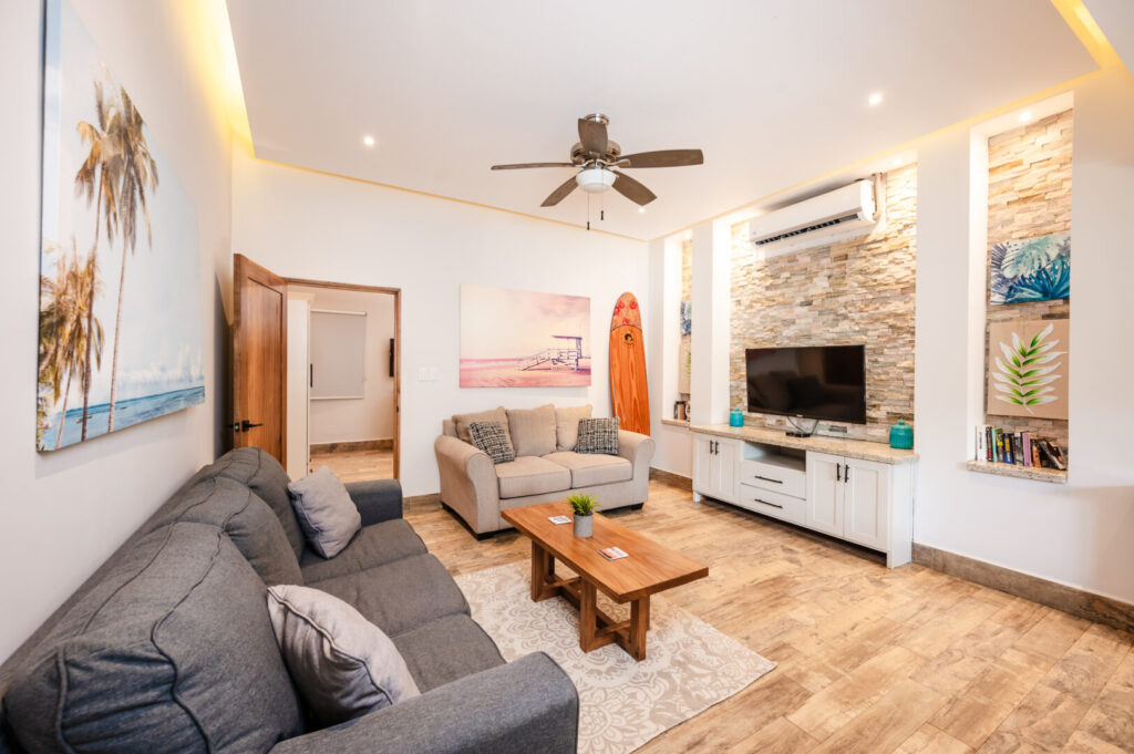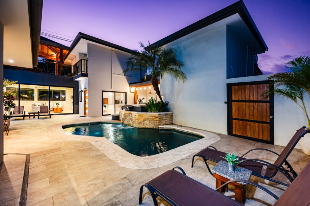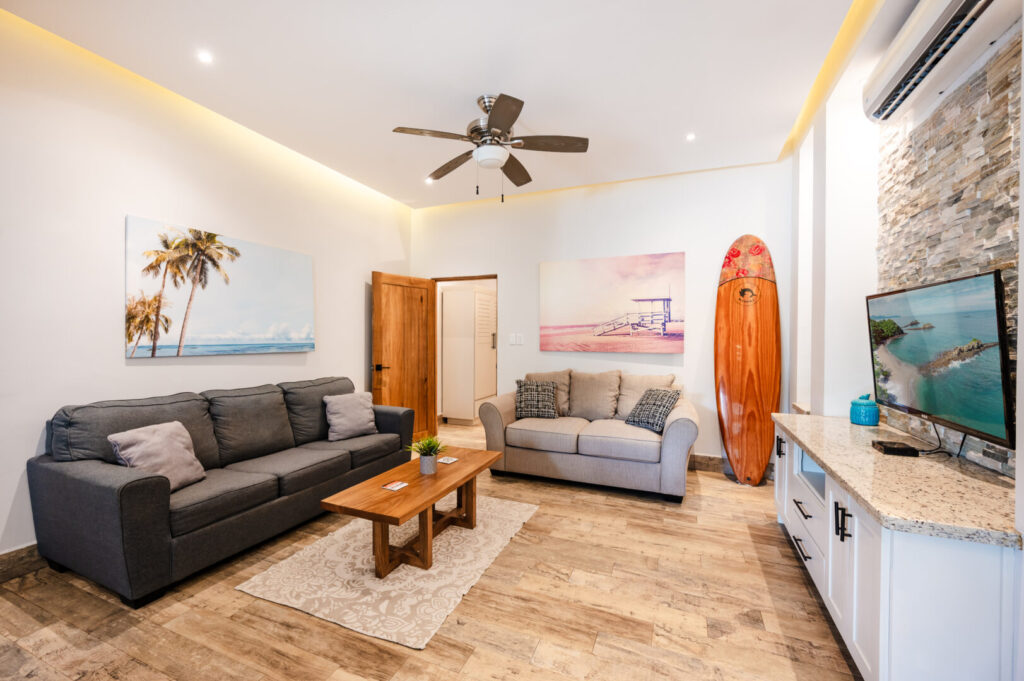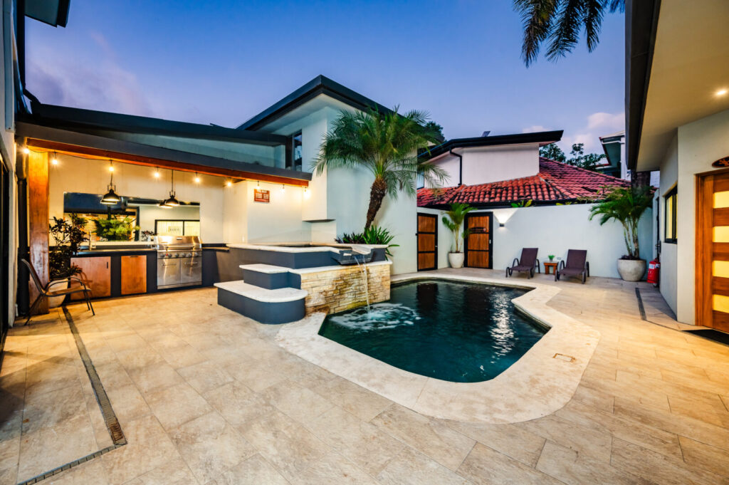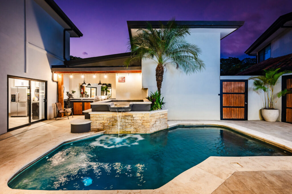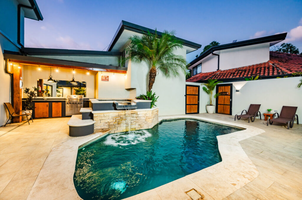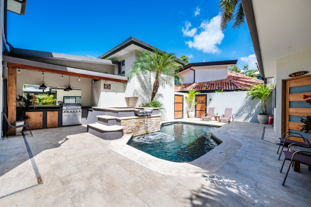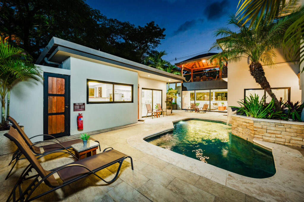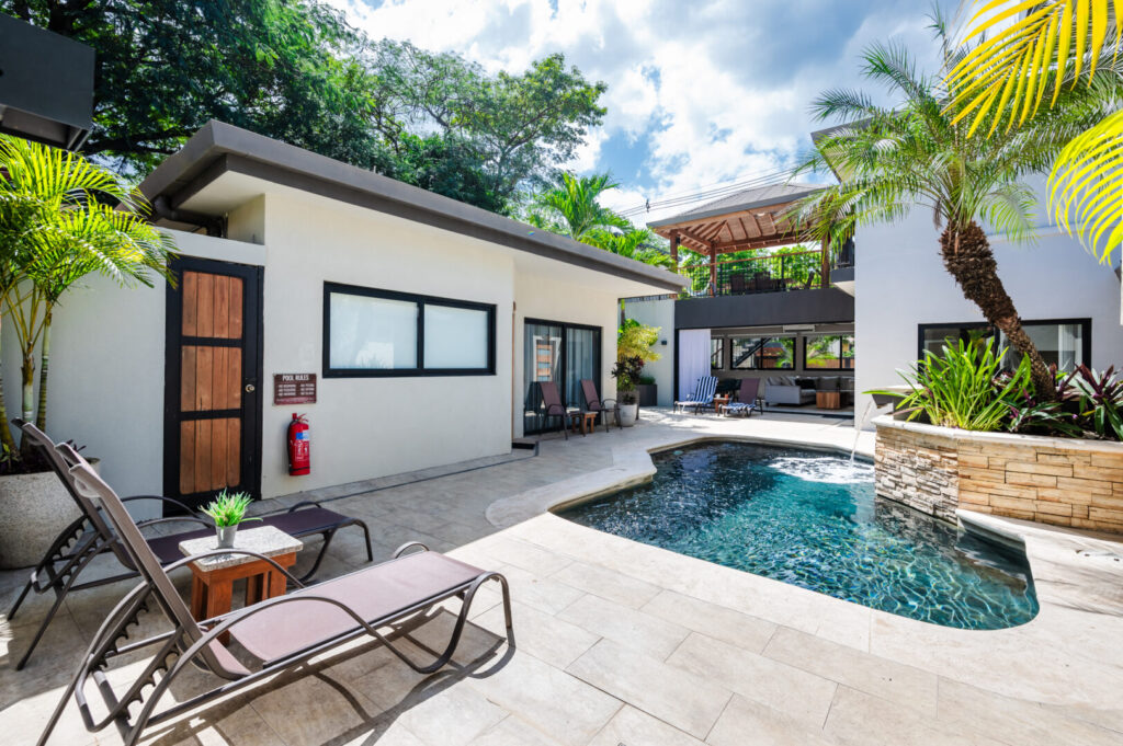 Iguana Surf Villa has 6 bedrooms (sleeps 17) 5 indoor kitchens and 1 outdoor kitchen/BBQ. 6.5 bathrooms and a swimming pool with sundeck and rancho. Each room is basically a suit, with its own full kitchen, TV, air conditioning, and living room. Ideal for large families to spend quality time together and then retreat to their own private space.Located in the center of Tamarindo 150 meters from the beach. The property is within walking distance to over 90 restaurants, shops, and supermarkets.