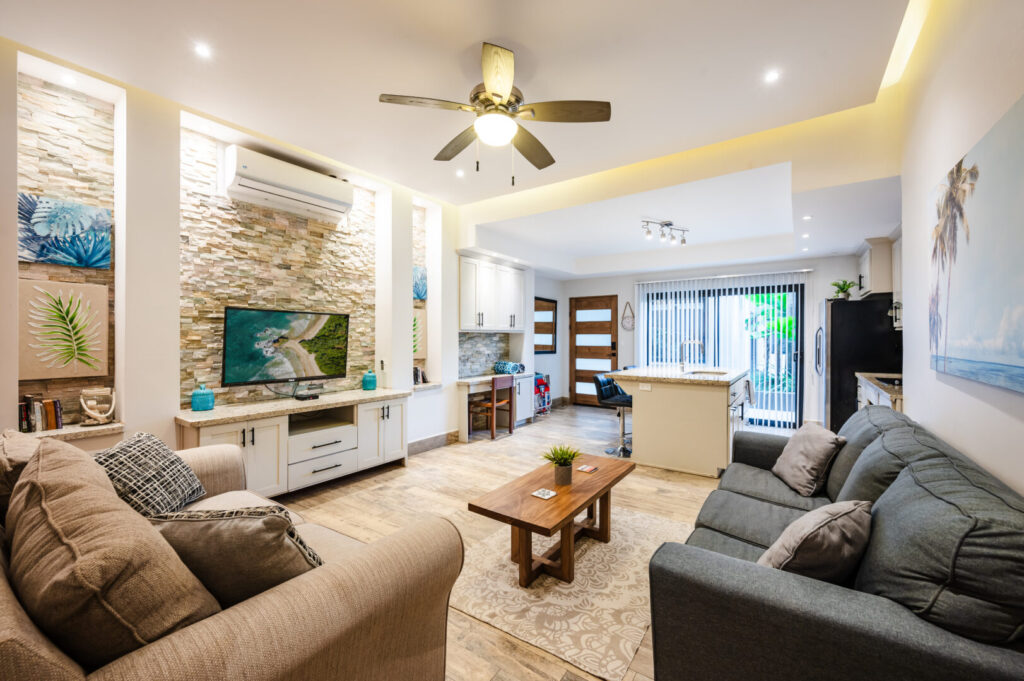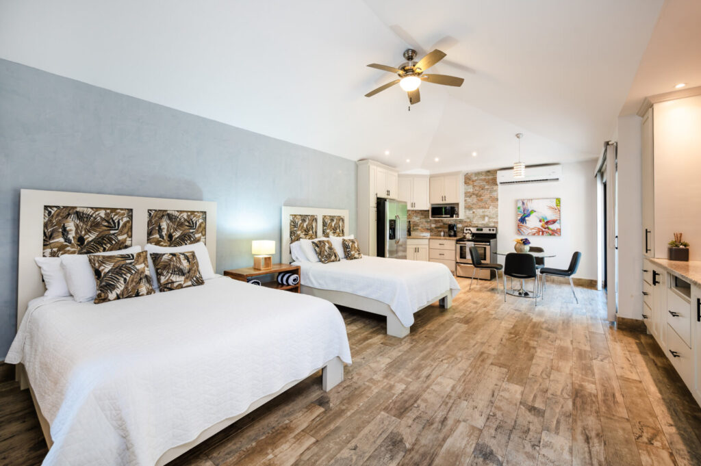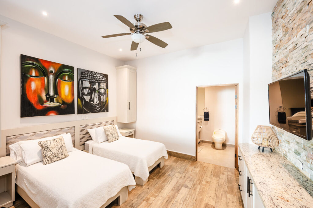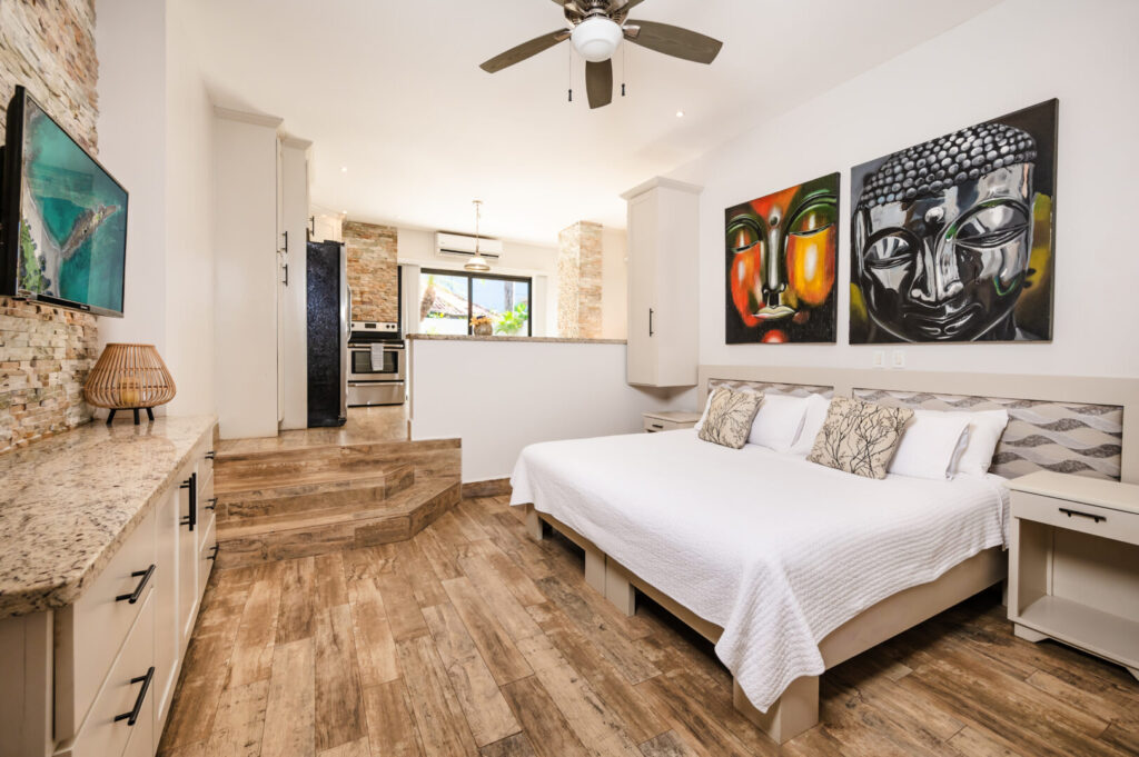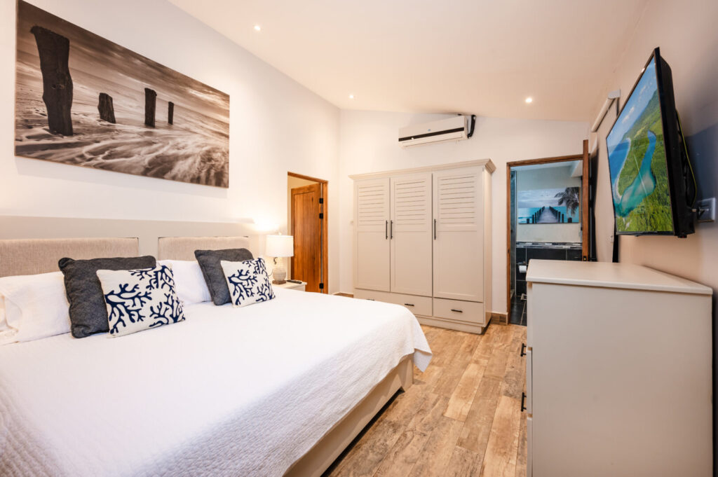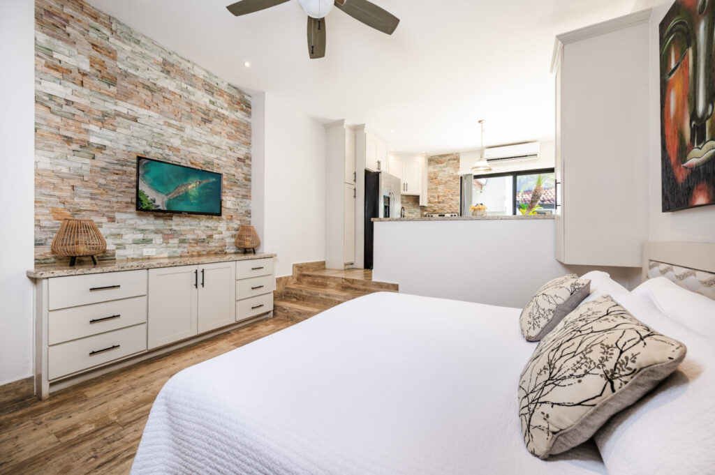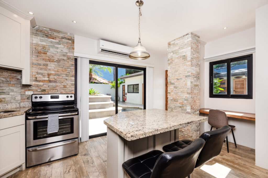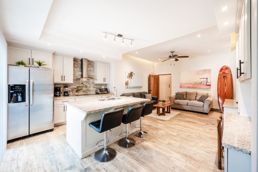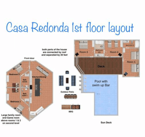 Iguana Surf Villa has 6 bedrooms (sleeps 17) 5 indoor kitchens and 1 outdoor kitchen/BBQ. 6.5 bathrooms and a swimming pool with sundeck and rancho. Each room is basically a suit, with its own full kitchen, TV, air conditioning, and living room. Ideal for large families to spend quality time together and then retreat to their own private space.Located in the center of Tamarindo 150 meters from the beach. The property is within walking distance to over 90 restaurants, shops, and supermarkets.