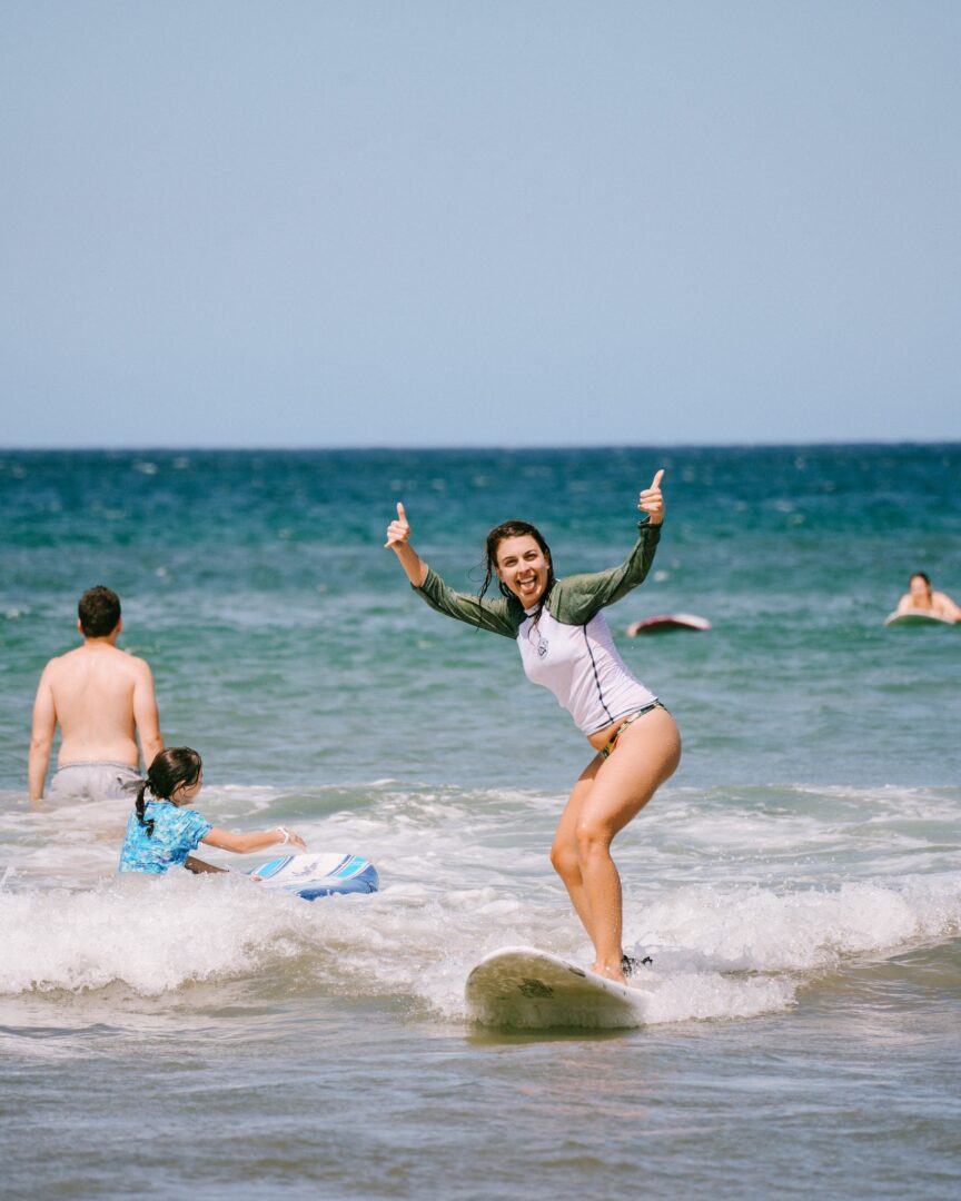 - Guided water session – Your instructor will be with you the entire time, helping you catch your first waves!